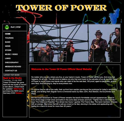 Discography, Tour Schedule, Image Gallery,etc. Thanks to David Garibaldi, Diane Ricci and Pat Rains for the direction...great job guys! Welcome to the Tower Of Power Official Band Website No