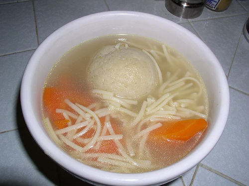 matzo balls (see below) and thoroughly heat them or drop uncooked matzo balls into