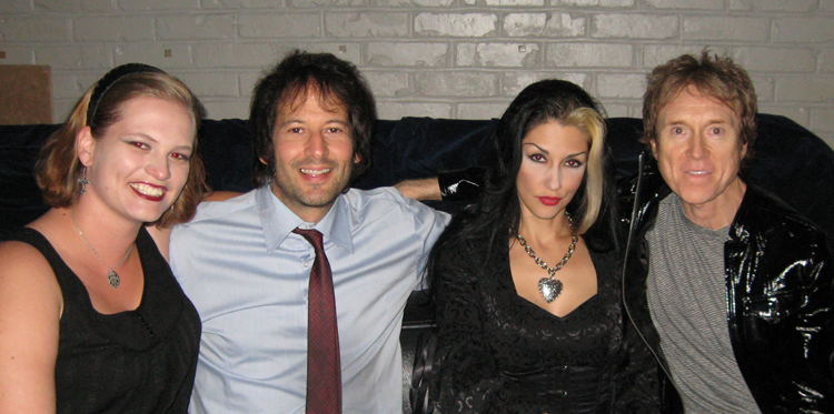 "G Tom Mac Album Release Party at Club Good Hurt" (By Jessica Chrysler) Goths and vamps delighted as G. Tom Mac celebrated their new release “Thou Shalt Not Fall” at the Club Good Hurt on Venice. MySpace celebrity Sanaz made an appearance as the evening’s hostess and the club was filled to capacity with long time Fanz and supporters. Gerard McMann belted out his lyrics alongside Tony Silver jamming on bass with a slide show projection of the cult classic movie The Lost Boys playing behind them.  The album release includes a remix of the original song “Cry Little Sister,” the theme song of The Lost Boys movie, and their music video is featured on the new sequel The Lost Boys: The Tribe DVD. Please visit GTomMac.com Pictured: Jessica Chrysler (McCartney.com), Tony Silver, Sanaz and Gerard McMann