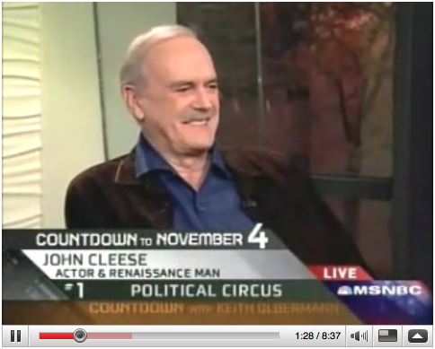 John Cleese on Keith Olberman Our old friend John recently popped up to express his first amendment rights in the form of a poem on MSNBC's Keith Olberman show.