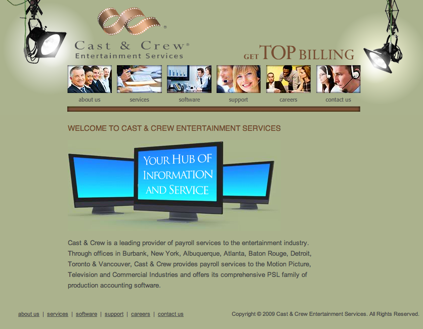 This month we want to feature two unique web site that we have developed for our clients: Cast and Crew McCartney worked under the command of DJLA Advertising to provide the Flash, coding, hosting, email connectivity and digital utility services for Cast & Crew who are a leading provider of payroll services to the entertainment industry. Through offices in Burbank, New York, Albuquerque, Atlanta, Baton Rouge, Detroit, Toronto & Vancouver, Cast & Crew provides payroll services to the Motion Picture, Television and Commercial Industries and offers its comprehensive PSL family of production accounting software.