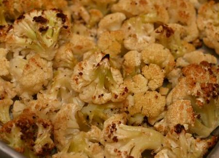 Preheat the oven to 450 degrees. Place cauliflower florets in a large