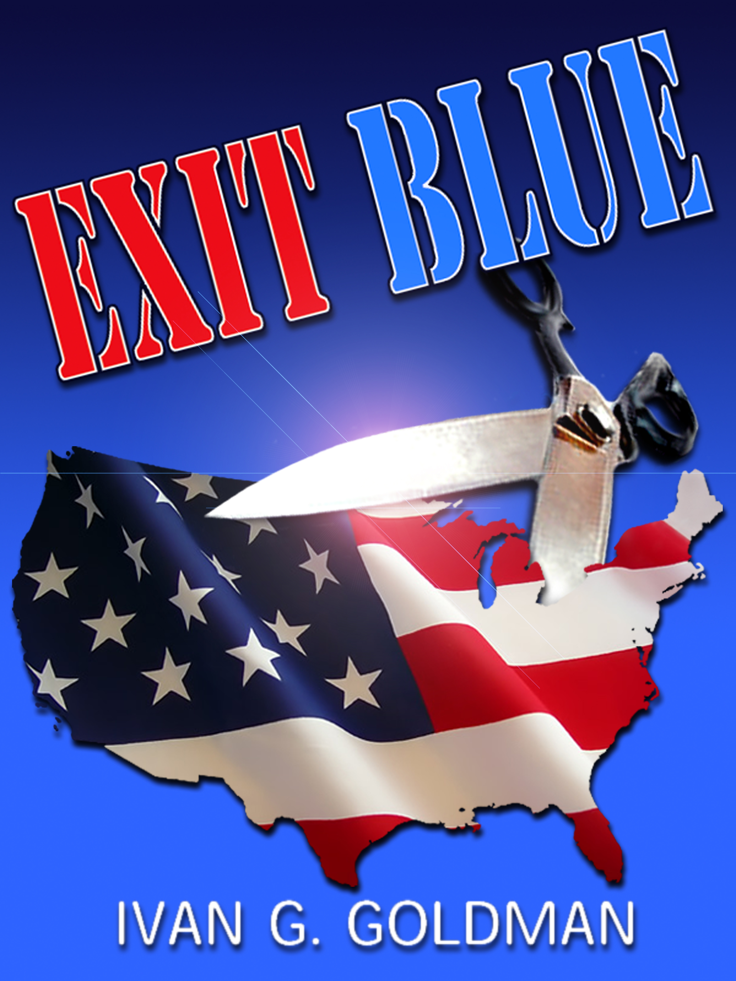 Ivan Goldman envisions a riotous near future in which the Blue States have seceded and formed their own union following a disastrous US invasion of Denmark, now deemed the central front in the war on terror. It's one of several conflicts being waged by a zealous Red Zone government in Washington that reportedly dispatches press gangs to fill military ranks while its citizens flee to Mexico seeking employment as domestics and busboys. Tossed into this maelstrom is ghost writer Delmore LeCorte, who becomes romantically entangled with both the Red Zone president and her more astute sister. Learning secrets he'd rather not know, LeCorte is pursued by a deranged vice president who reportedly rules his domain from a lair deep beneath the Rockies and a ruthless Blue Zone senator who's the love child of a famously randy Democratic ex-President. It's left to the reader to decide whether Exit Blue is inventive political satire or a prescient look at more divisive times ahead. (Now available on Amazon)